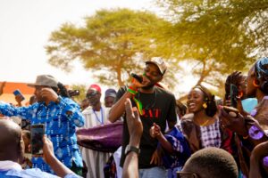 Außer Ivan und mir waren im Auto noch ein Rapper namens Roi Hems und seine Frau Malika, eine Fotografin und Kulturschaffende. Hems wohnte mittlerweile seit über zehn Jahren in Hannover, war aber grade da, um ein Computerzentrum in dem Dorf Thidé einzuweihen, in dem er seine Kindheit verbracht hatte. Er sang im Auto alte Xavier Naidoo-Lieder und „den besten Rapper Deutschlands“ und ich grinste nur so in mich hinein, während er das deutsche Kulturgut verbreitete. Im Dorf angekommen wurden wir von einem Empfangskomitee mit Chor begrüßt. Am nächsten Tag stieß noch Sänger Abda MC samt Entourage dazu. Untergebracht wurden wir alle im Gemeindezentrum.